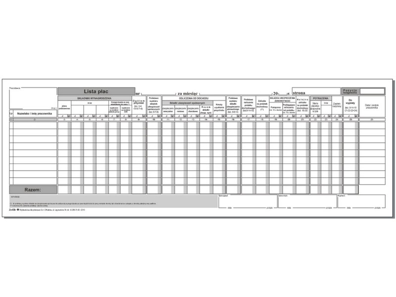 Strona główna » Druki akcydensowe » Praca i płace » Zo-83b Lista płac 9 pozycji,